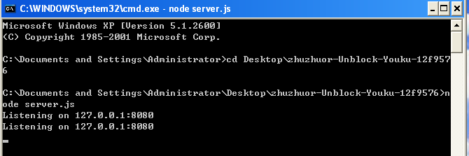 node server.js运行本地代理服务器。运行后的截图示例: