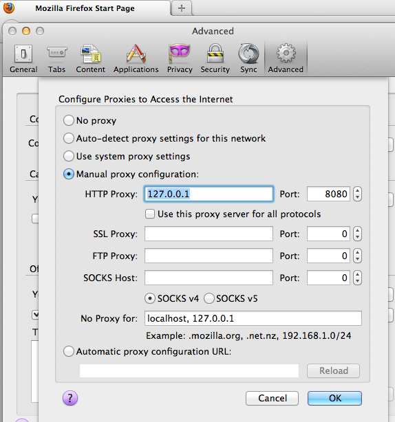 因只实现了对 HTTP 协议的代理,浏览器设置时请注意只设置 HTTP 的部分,并不要勾选 Use for all protocols,不然 HTTPS 链接会出错。